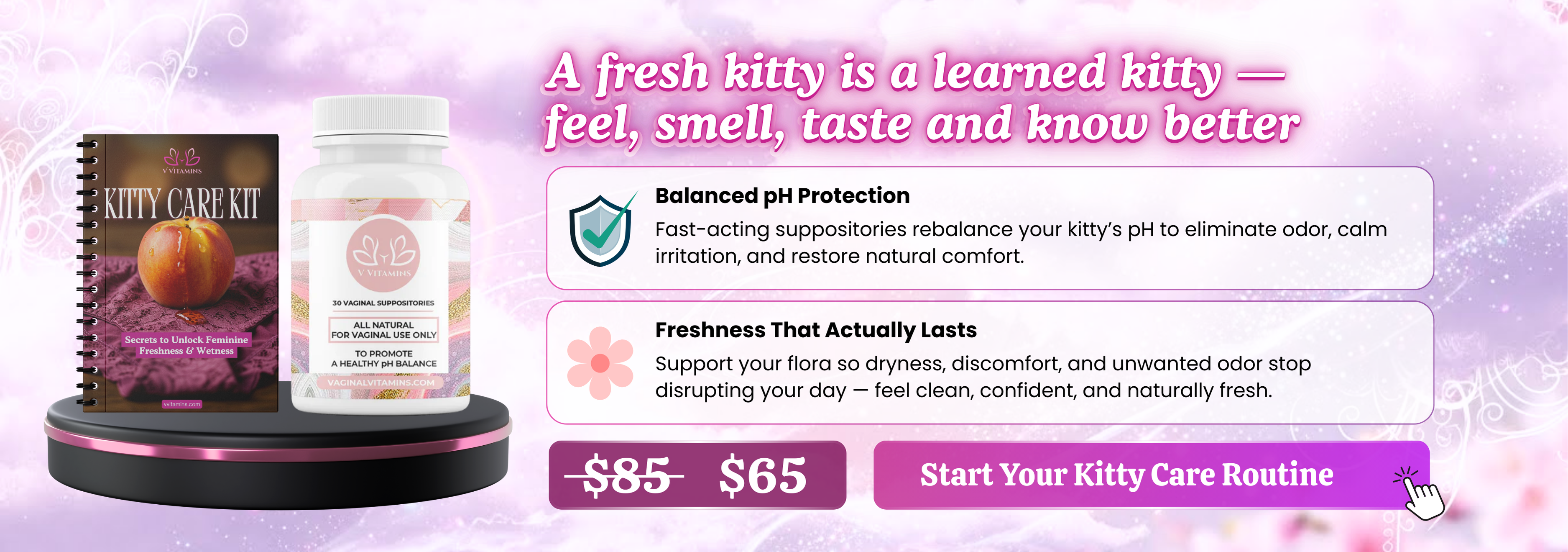 Start the New Year with a soothing reset and a confidence-boosting care routine. Get gentle relief from irritation, odor, and discomfort — plus the Kitty Care Guide to help you stay balanced, fresh, and in control of your wellness ✨ Grab Your Bundle for $65